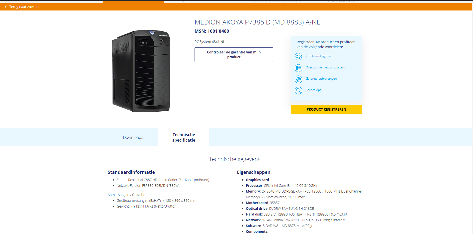 Wat is de website waar dit screenshot van is? Want als ik zoek op 'MEDION AKOYA P7385 D (MD 8883) A-NL' krijg ik alleen maar computers te zien met i5 760.