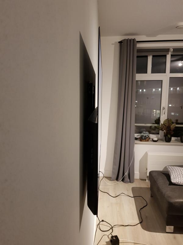Nu zit ik zo'n 2,5-3 meter van het scherm, maar vind ik 55 inch echt te groot en dominant in de kamer. Ik vind grote televisies als ze uitstaan sowieso maar lelijke apparaten, dus een mooi compromis is zo'n 48-49 inch. Daarnaast heb ik heel graag een TV die volledig plat tegen de muur kan om zo meer een schilderij effect te krijgen. Nu ben ik bezig om de verschillende opties uit te werken.