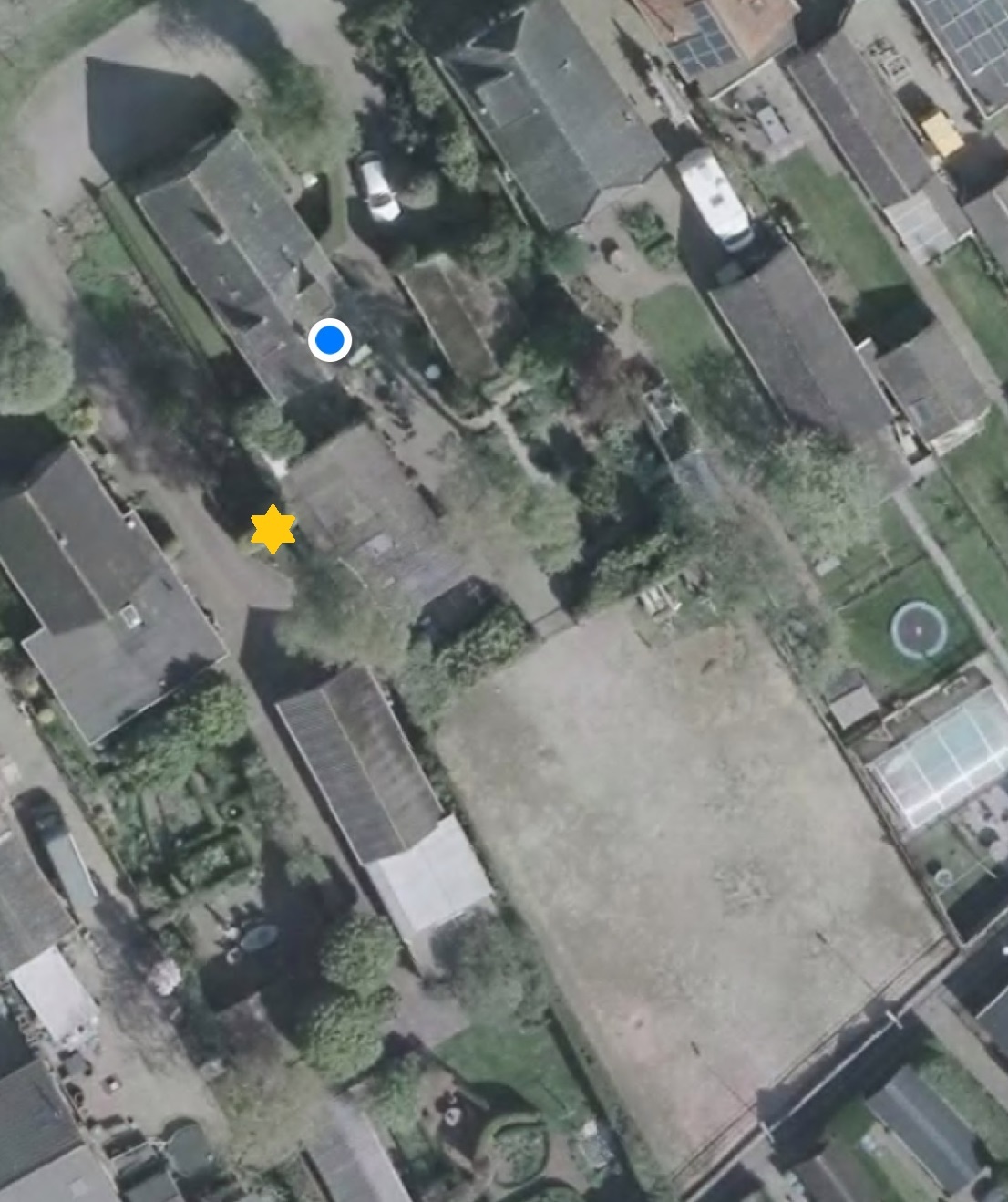 Er is plek voor 40 panelen op Zuid-West op een nagenoeg leeg dakvlak. Geen schoorstenen of dakkapellen, maar wel wat schaduw van een boom bij de buren aan het einde van de middag. De boom staat op 't plaatje met de ster aangegeven.