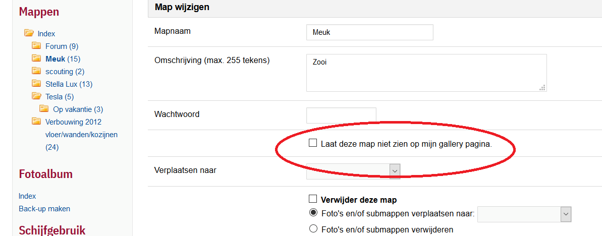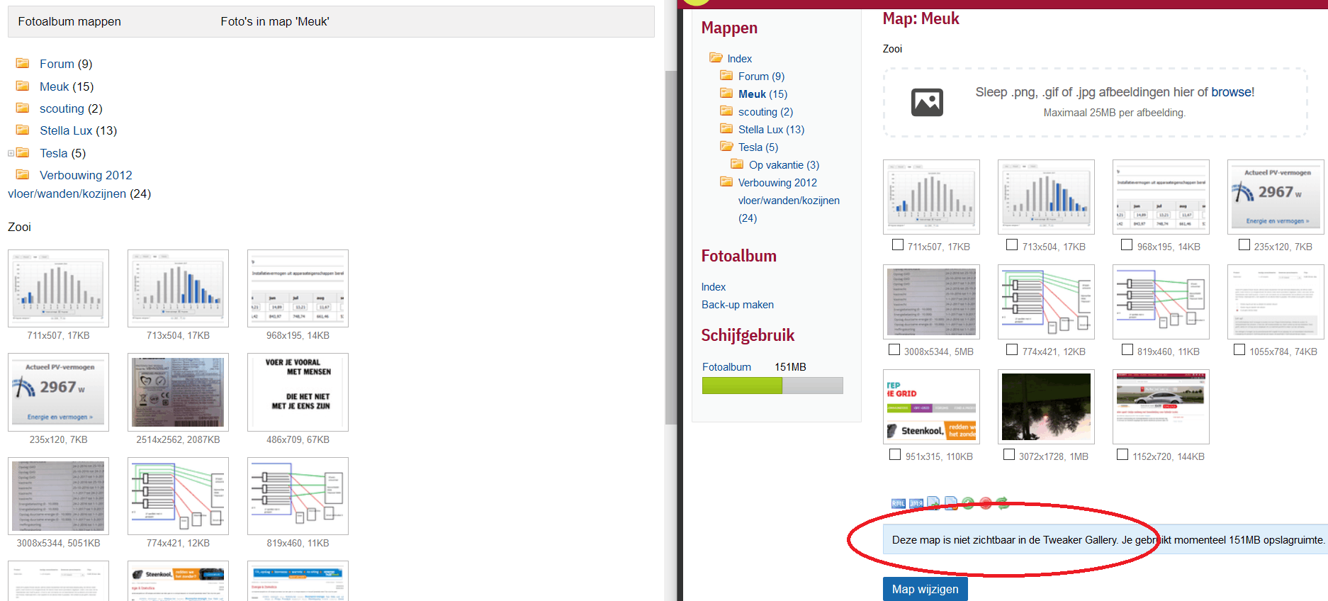 Waarom presenteer de pagina van de map Meuk dan toch "Deze pagina is niet zichtbaar in je Tweakers gallery" terwijl als ik kijk op de map zelf het niet aangevinkt staat bij de functionaliteit, en de eindgebruiker ook gewoon het ziet (dat klopt dan wel