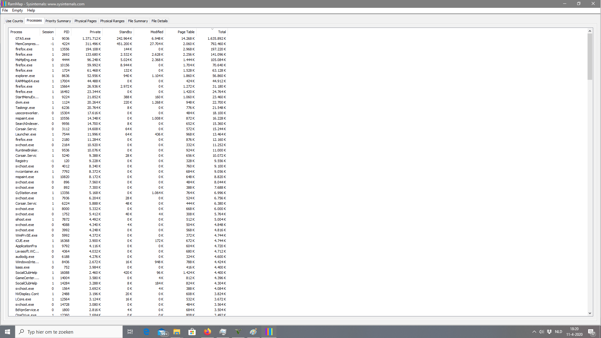 Ik heb de laatste tijd veel last van te weinig ram voor ram intensievere games zoals bijvoorbeeld Grand Theft Auto 5. Ik zou technisch gezien meer dan genoeg ram moeten hebben (ik ken niet het exacte model) maar ik heb 8gb ddr3 ram. Ik merk de laatste tijd ook dat ook al doe ik niks met mijn pc, het ram gebruik alsnog rond de 40% zit. Ik heb dus gekeken bij mijn ram gebruik en zag dit: