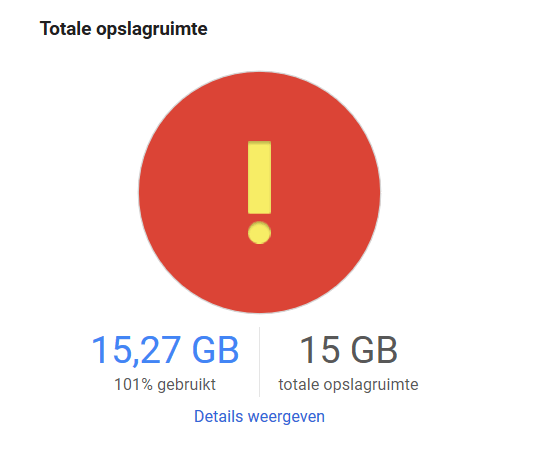 Nu heb ik hiervoor een aantal jaar geleden een 1 TB opslagruimte pakket erbij gekocht, voor mail, foto's en drive. Geldt voor het hele domein, maar toch heeft mijn vrouw nu opslagruimte tekort.