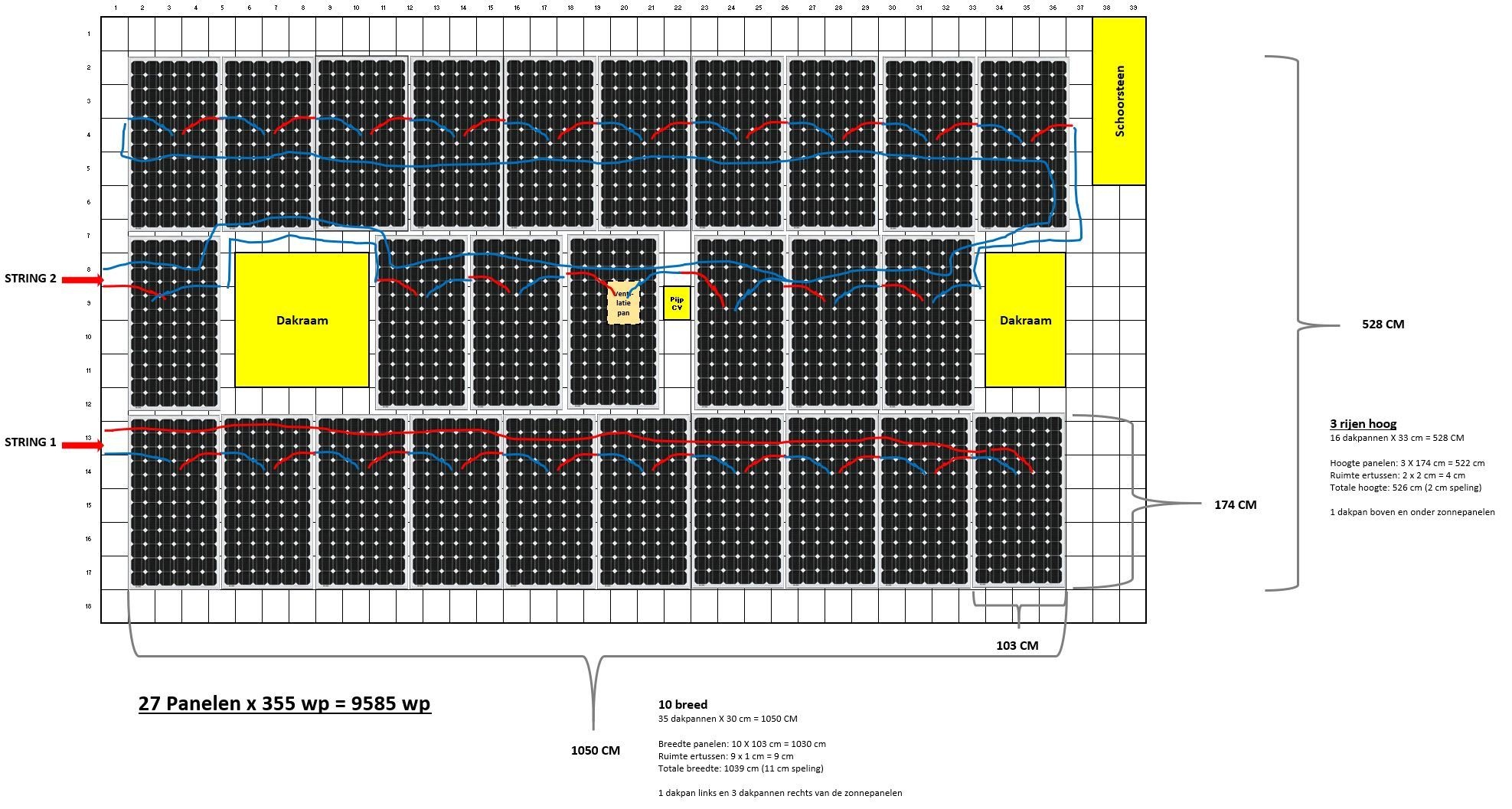 Ik ben uitgegaan van Q cell 355 WP panelen van 174 cm x 103 cm