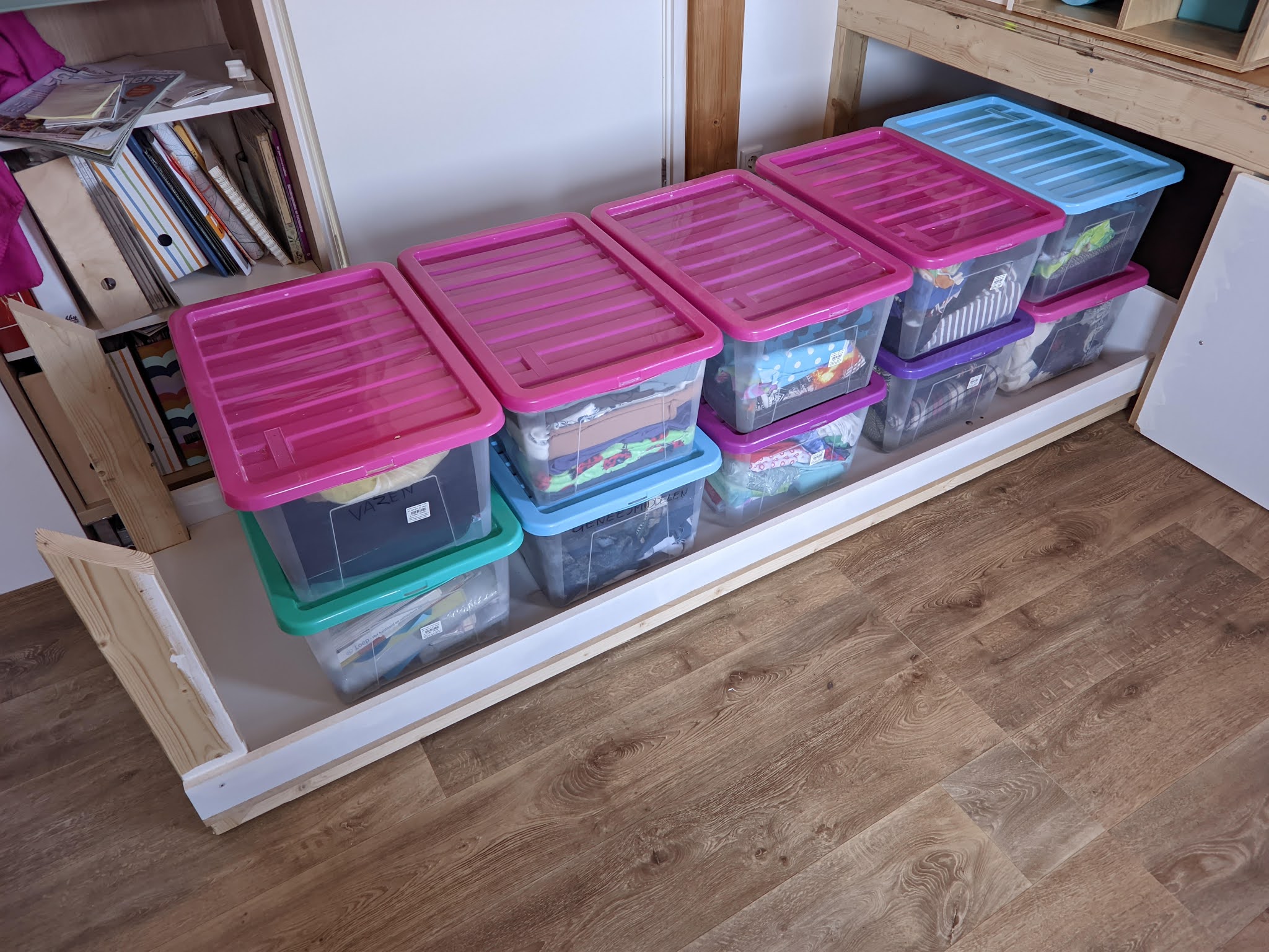 Met clips konden die plankjes ook verschuiven, wat niet handig is bij de deur.
