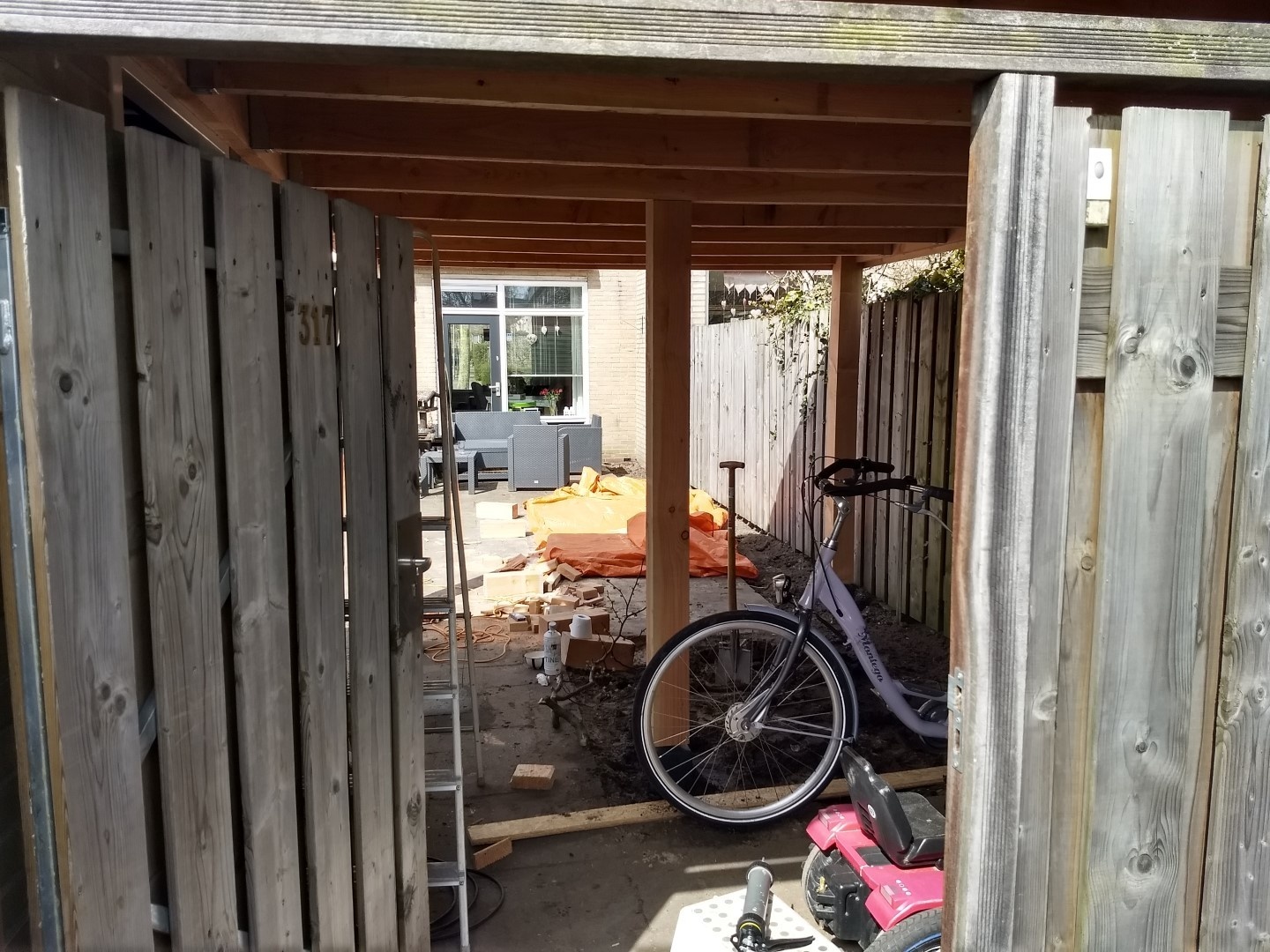 Ik wil een kant onder mijn veranda dichtmaken. Het gaat om de zijkant aan de korte zijde. Veranda ziet er nu zo uit. Er komt nog een nieuwe eettafel en stoelen enzo.