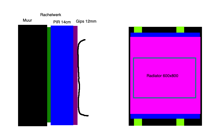 Of toch bij het rachelwerk een extra multiplex plaat monteren en dan een schroef dwars door gips+PIR+multiplex die de radiator vasthoudt?