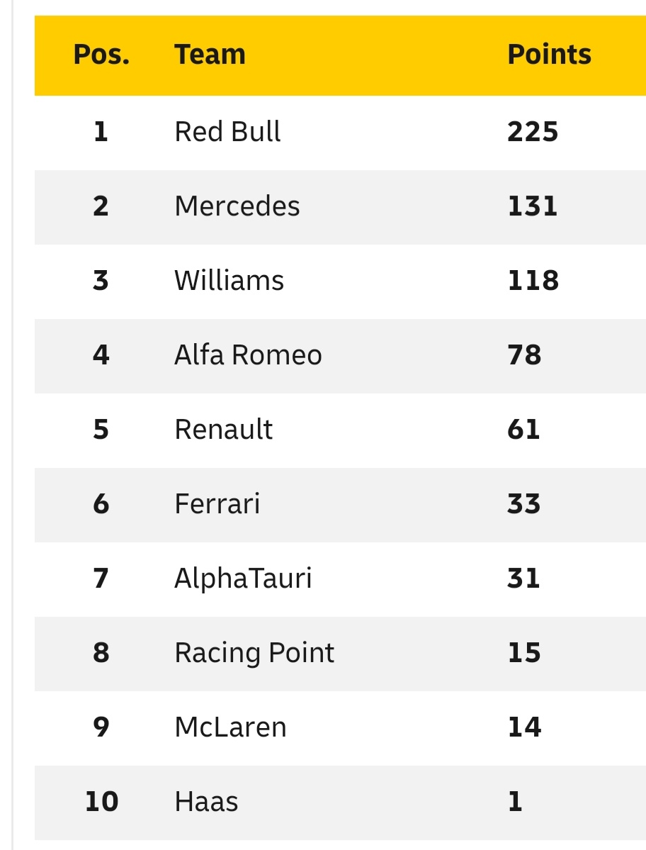 Bovendien zat Albon toch wel weer erg ver achter Max. Blijf het toch raar vinden dat Max met een vergelijkbare auto zo dicht achter Mercedes zit terwijl Albon moeite heeft om überhaupt voorin het middenveld te rijden.