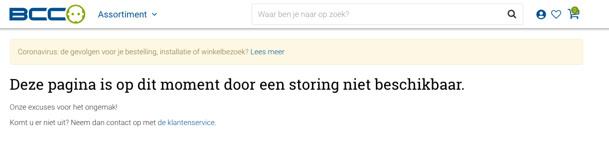 Die hele site lukt inmiddels niet meer, ik kan niet eens meer een wasmachine bestellen al zou ik willen.