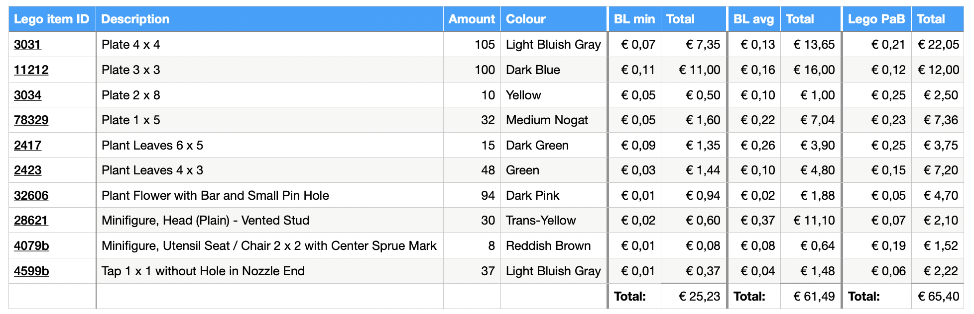 Misschien is het ook interessant om de PaB site van Lego en een site als ToyPro in de spreadsheet op te nemen. Ik ben benieuwd naar het prijsverschil 😄
