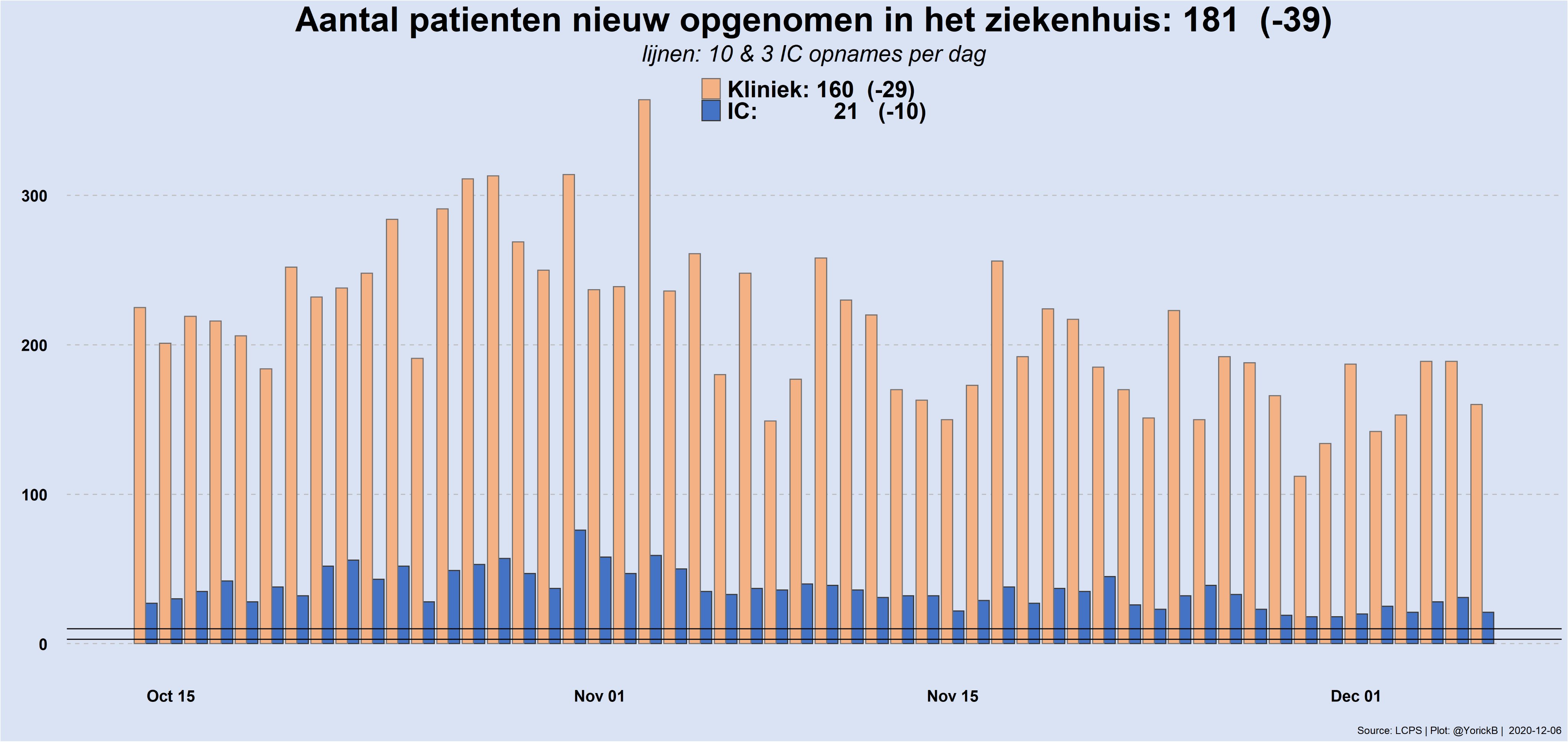 Die grafiek gaat over de huidige bezetting ziekenhuizen als ik het goed heb, niet de nieuwe opnames.Drardollan schreef op zondag 6 december 2020 @ 17:46: