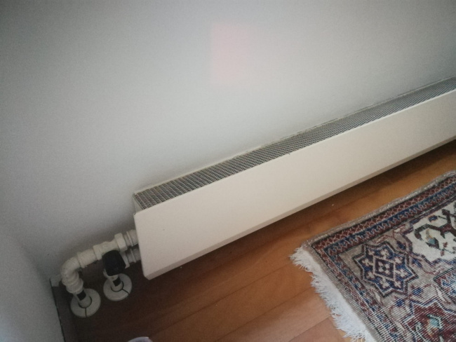Ook hangen er maar 2 van deze radiators in de huiskamer, de grote (op de foto hier boven) aan de voorzijde onder het grote raam.