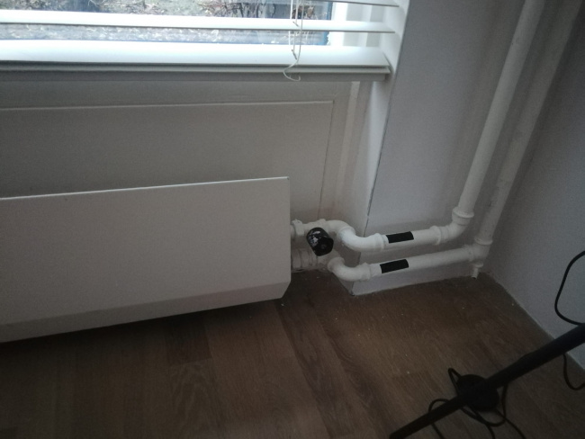 Waarbij me opvalt dat er 1 in de huiskamer en de radiator in de kantoorkamer verkeerd om aangesloten zijn...??