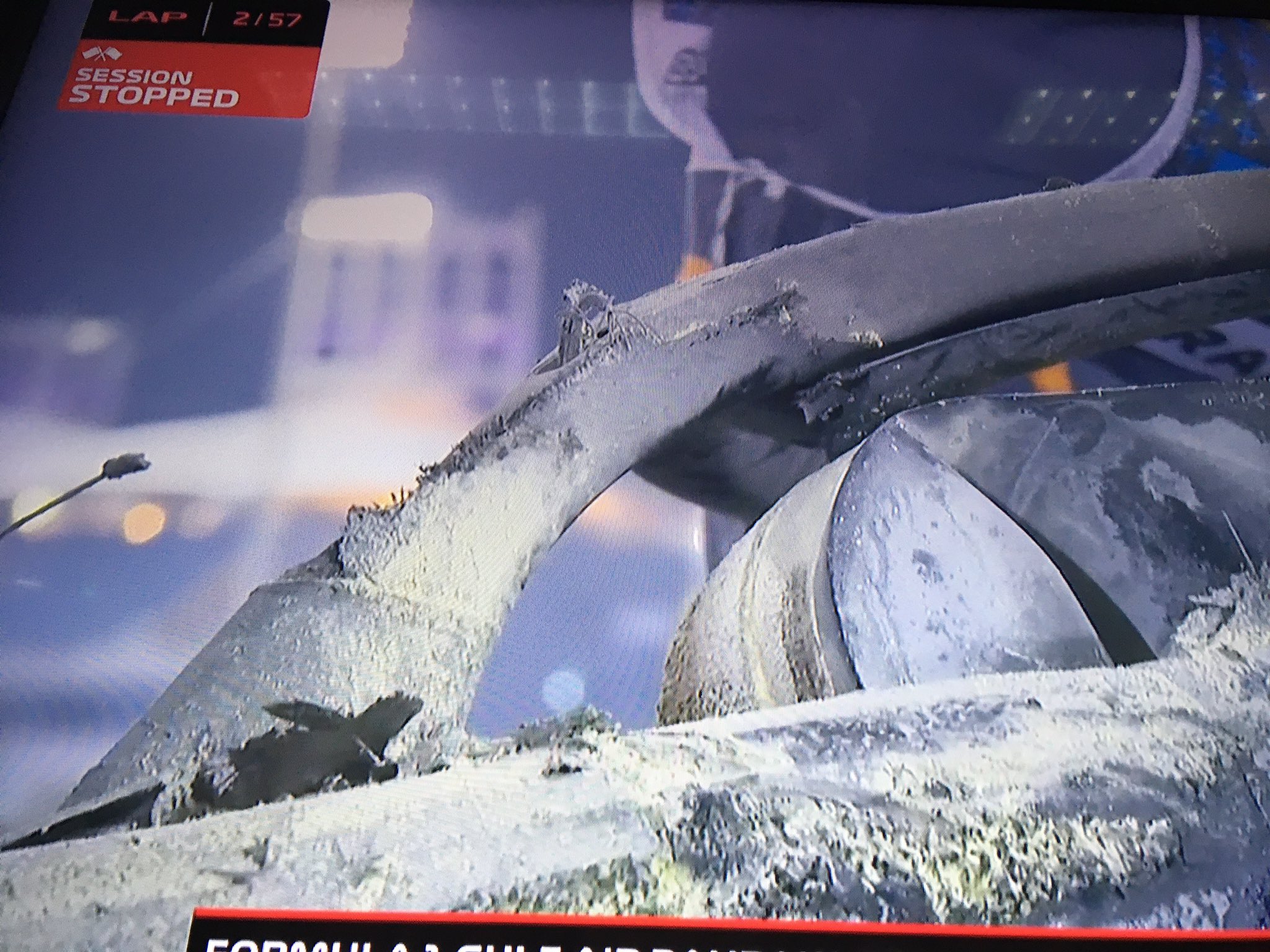 Dankzij de halo leeft Grosjean nog, maar als Grosjean ook maar een halve meter dieper of minder diep in de vangrail had gezeten was hij levend verbrand, want dat had hij echt klem gezeten. Hij heeft écht zo ontzettend veel geluk gehad, en wat mij betreft de enige echte held van de dag, door helemaal op eigen houtje zo uit de auto te klimmen. Als je de foto's van het wrak zag in de vangrail kun je echt niet begrijpen hoe hij dat heeft geflikt.