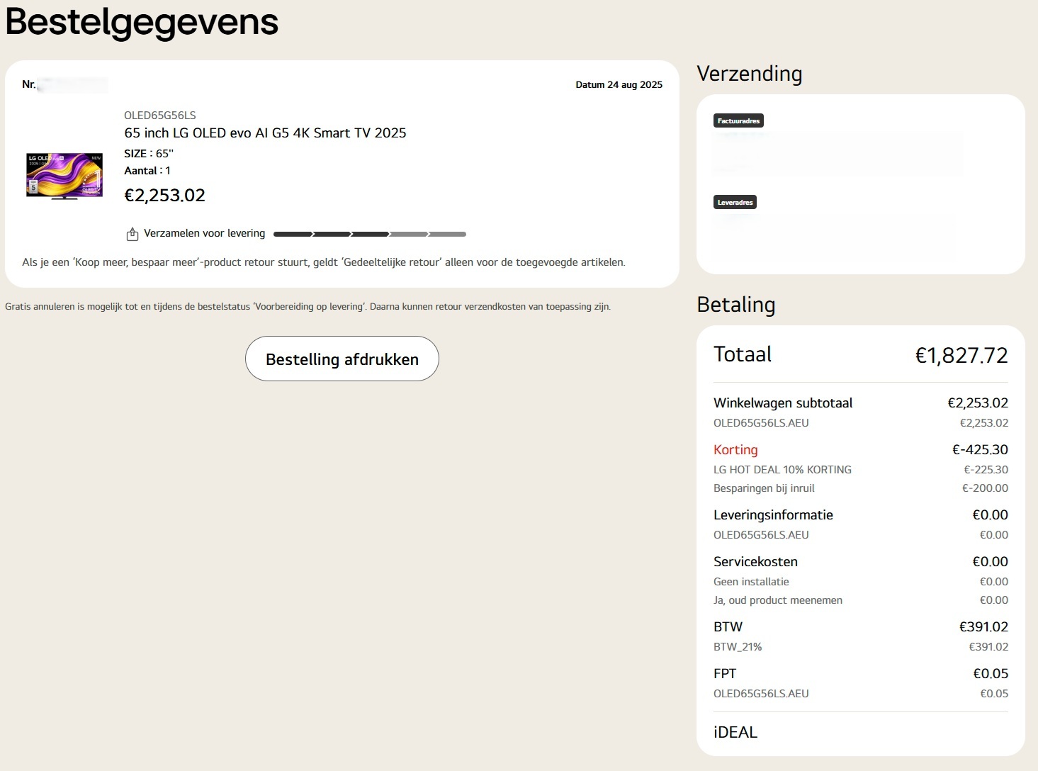 HoppyF in "[LG OLED] Cashback - Ervaringen & Discussie"