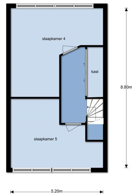 2 verdieping (bouwjaar +/- 2002) met speelkamer 4 (radiator t11 afmeting 230 x 50cm) , werkkamer 5 met elektrische zonwering (radiator t11 afmeting 230 x 50cm )