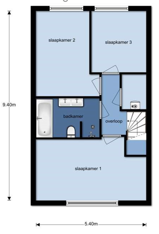 1e verdieping met ouderslaapkamer 1 met elektrische zonwering (radiator t11 afmeting 160 x 40 cm ) , slaapkamer 2 (radiator t11 afmeting 110 x 40 cm) , slaapkamer 3 met 2 buitenmuren (radiator t11 afmeting 110 x 40 cm ) , badkamer welke naar ons idee qua comfort warmer mag (radiator t20 afmeting 65 x 90 cm) en plaatsing c.v. ketel.