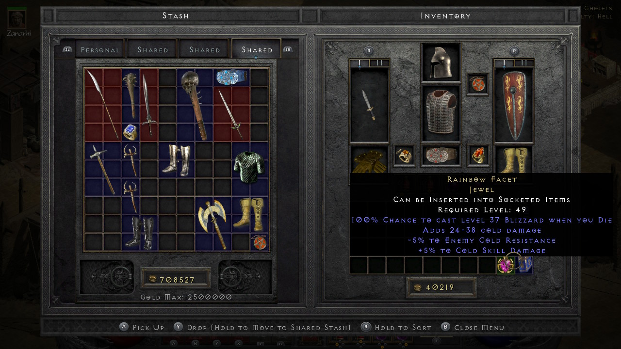 Ik dacht net, laat ik nog één rondje NM Cows - Meph - Diablo - Baal doen. Van de cow king the Oculus gekregen, en van Diablo voor m'n merc de Undead Crown gekregen. Icm met Skin of the Flayed One heeft die nu een respectabele hoeveelheid % lifesteal. Het is nog niet de gear die het moet zijn, maar het is vooruitgang iig.