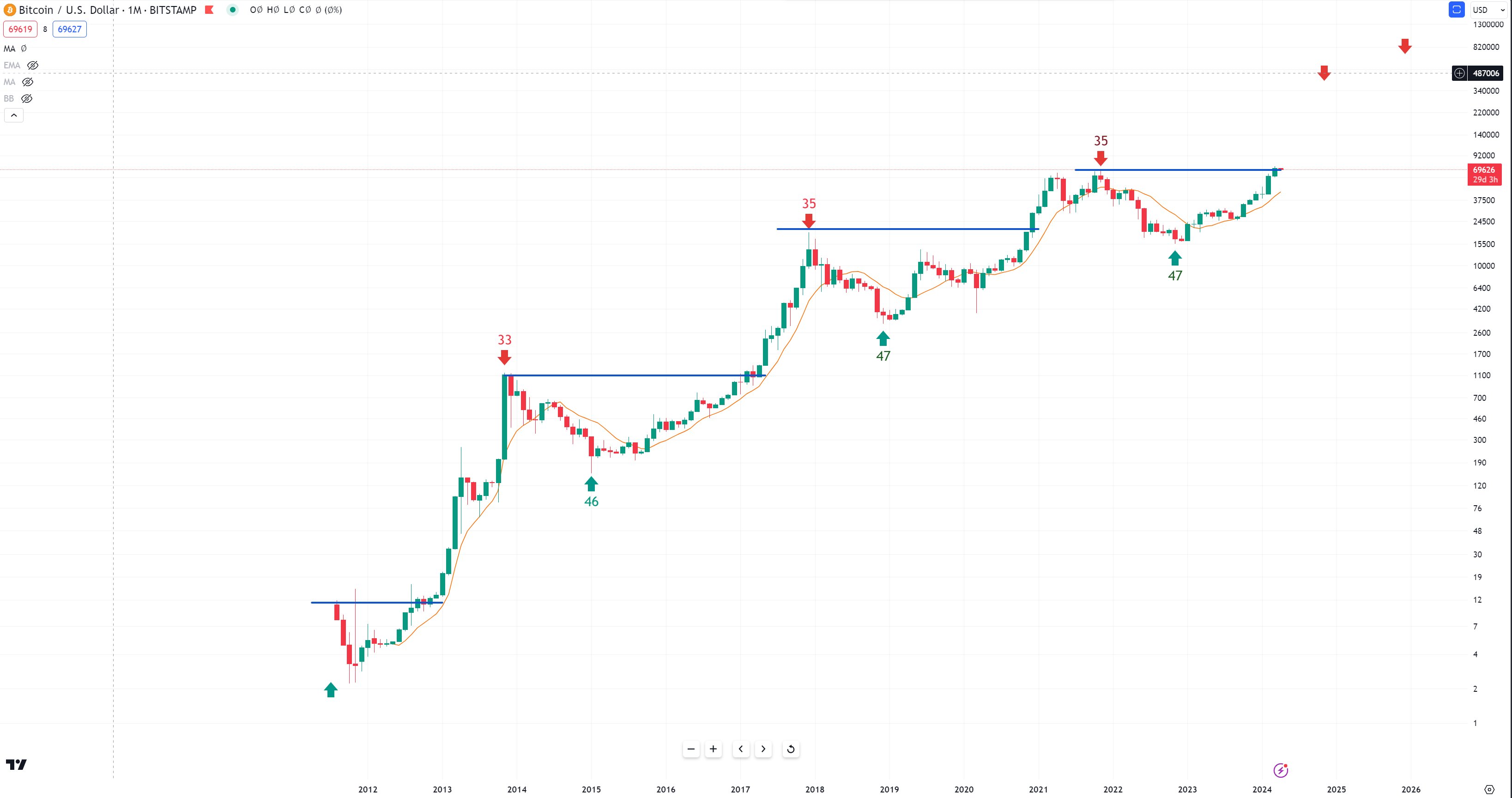 1 minuut data van Bybit met Metatrader 4 ( ik trade niet maar lees de price action ).