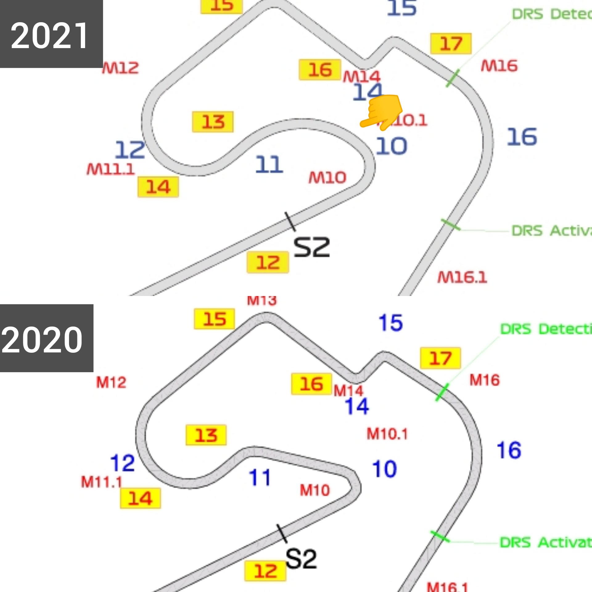 Ik vindt het maar een rare aanpassing. T10 was juist een van de (2...) plekken op dit circuit waar je iemand kon uitremmen. En T11 was zo'n smijt bocht waar je het redelijk makkelijk verkeerd kon doen en je daardoor veel tijd verloor in T12. Dat hebben ze nu geheel teniet gedaan. Zit wellicht meer flow in, want T10 zal je meer snelheid kunnen meenemen. Maar voor het racen (cq inhalen) zal het niet bevorderlijk zijn.
