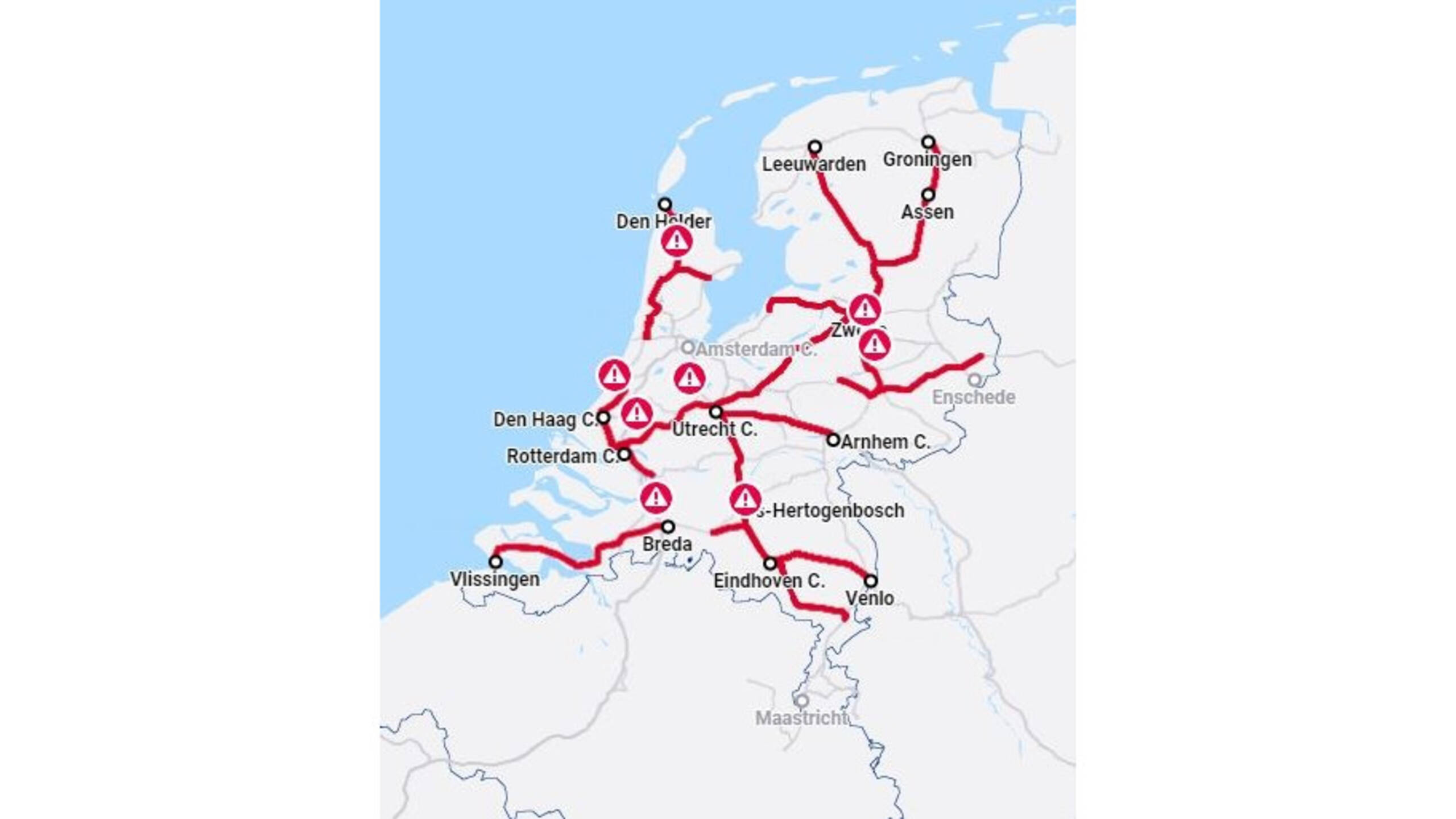 fuck het hele treinverkeer ligt plat, zit je dan op het station te wachten.