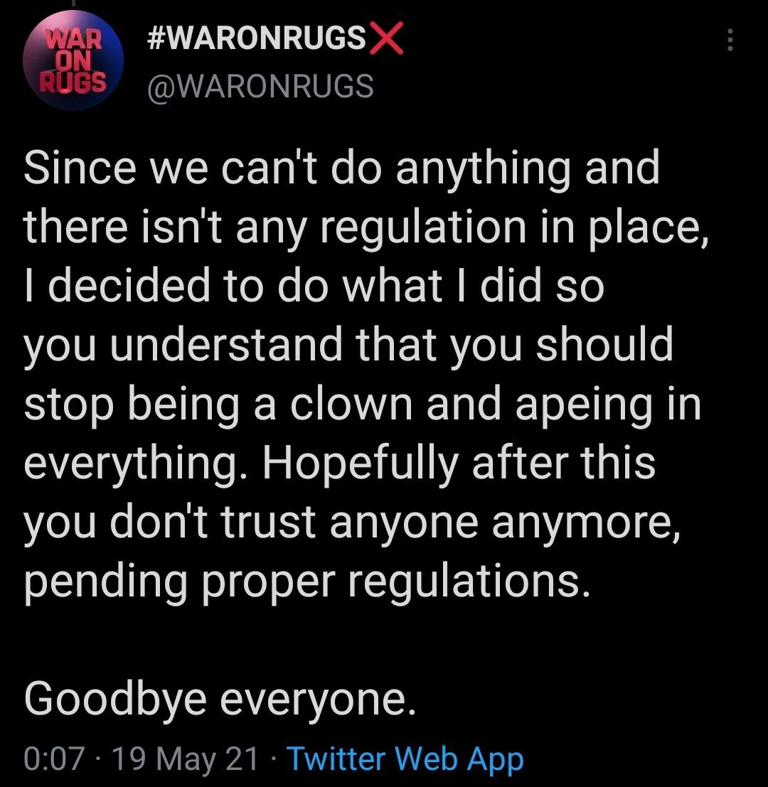 De geloofwaardigheid van dat war on rugs was al een tijdje discutabel, toch? Projecten die onterecht als onbetrouwbaar werden geflagged, en ondertussen andere coins aanprijzen die alsnog spontaan klapten.