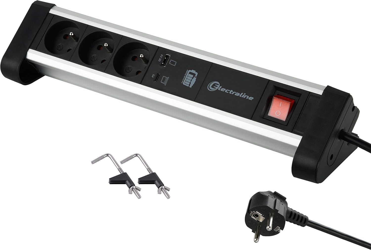 Ik wil de kabelbende op mijn bureau verminderen en ben al een tijdje op zoek naar een fatsoenlijke stekkerdoos met USB PD. Dus niet de standaard 5V/2A poorten maar met een poort die op hogere voltages kan werken zodat mijn Samsung smartphone sneller oplaadt (9V/1.5A in dit geval).