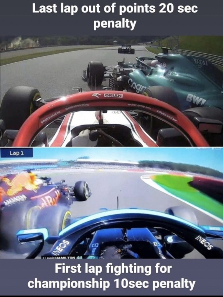 Het spijt me, maar dat is gewoon gelul en laat zien dat er niet op een consitente en onpartijdige manier beoordeeld wordt door de stewards.Kenhas schreef op maandag 19 juli 2021 @ 13:23: