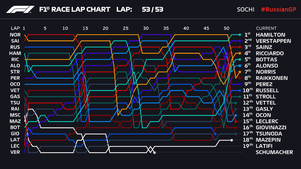 Lewis bleef de eerste keer uit, ging daarna toch naar binnen toen het team aangaf dat het erger ging worden, hij ging net als Max precies op tijd erin, en ook weer continu updates tot de winst veilig was.