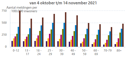 De incidentie van ongevaccineerden is deze maand 2 tot 2,5 keer zo hoog als vorige maand (in alle leeftijden). Die van gevaccineerden is gelijk gebleven.
