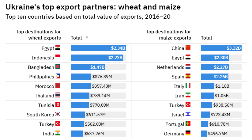 Van hun graan gaat mais veel naar NAVO landen, tarwe veel minder.