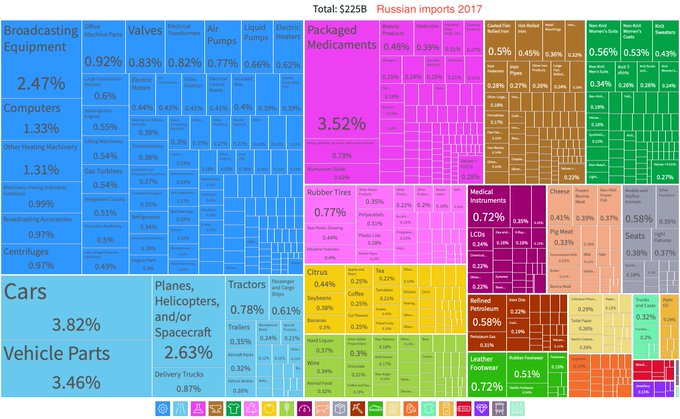 Overigens, zoveel sancties zijn er niet eens waar de gewone rus wat van merkt. Is dat bewust zo gekozen? Volgens mij importeren ze veel voedsel uit de EU?