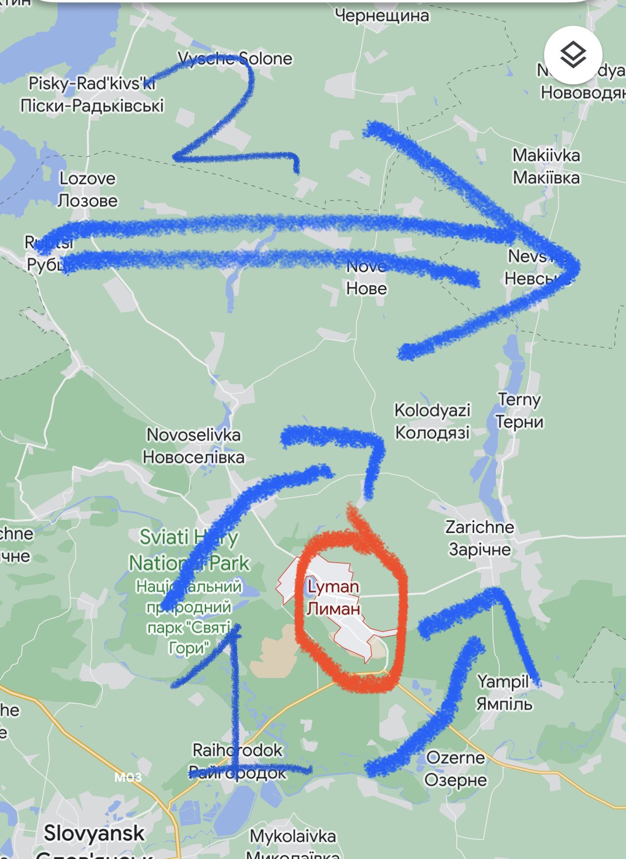 Lyman is in operational encirclement ! pic.twitter.com/IColZf6Qfv