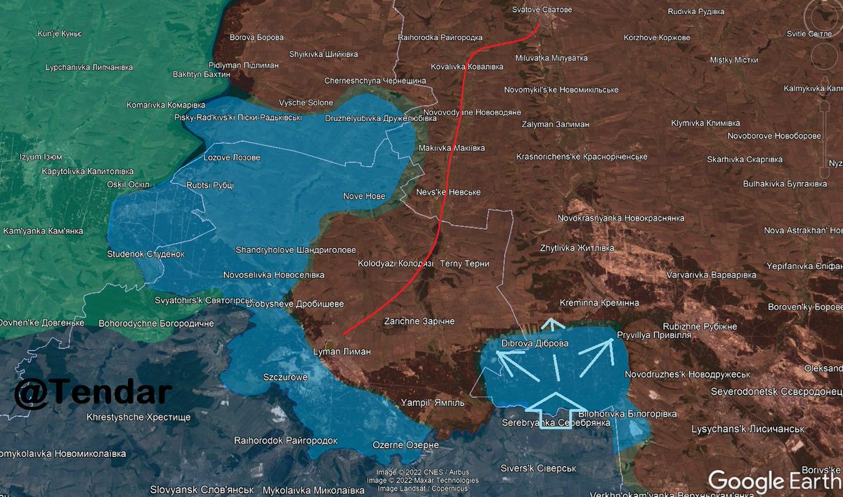 Once Lyman falls, the axis west of Zherebets will have their flank protected by the eastern axis and they can start advancing towards Svatove.