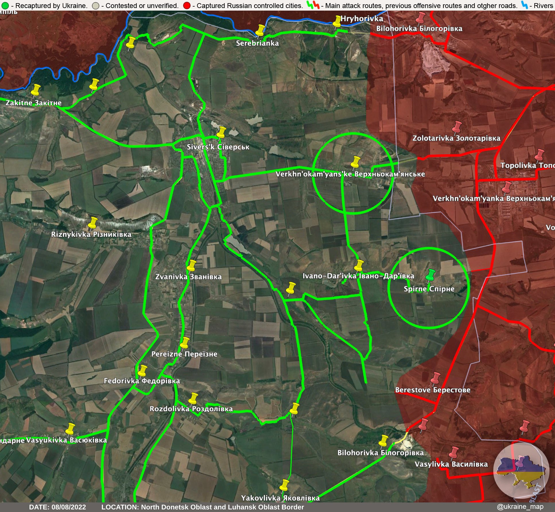 Currently, the village of Spirne and its surrounding area are mostly under control of Ukrainian Forces