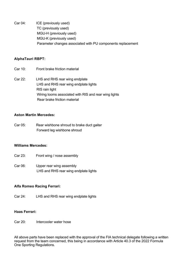 Banden hoeven pas 5 minuten voor de start op de auto te zitten, en tot dan mogen ze kiezen. Alleen Pirelli weet het (iets?) eerder.Exocet schreef op zondag 19 juni 2022 @ 19:39: