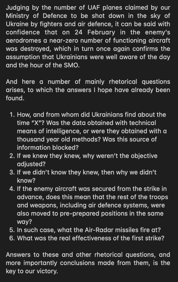 Heel interessant, over de materiële uitputting van het Russische leger.