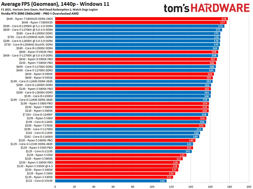Wat de CPU belasting betreft... verschil tussen een stock 12400 budget CPU (met voltage unlocked, kan gewoon op een B660 moederbord) of een high-end 12900k op stock praat je over 163 vs 169 FPS. Zie bijvoorbeeld
