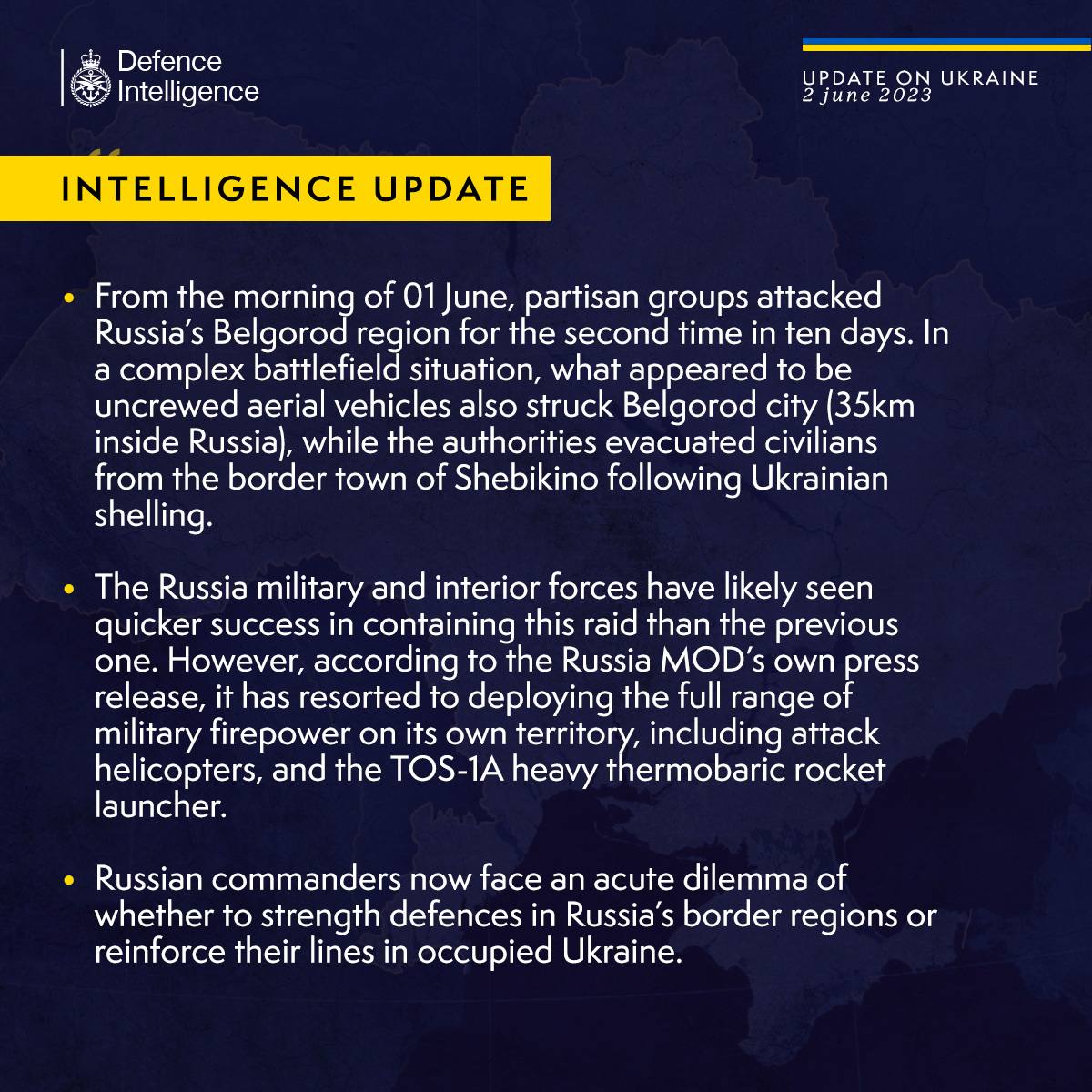 Ik denk dat de volgende excursie al gepland wordt, dit blijven ze doen totdat ófwel dat langverwachte Oekraïense offensief van start gaat ófwel totdat deze groepjes te lang of te diep Rusland.RoD schreef op donderdag 1 juni 2023 @ 15:16: