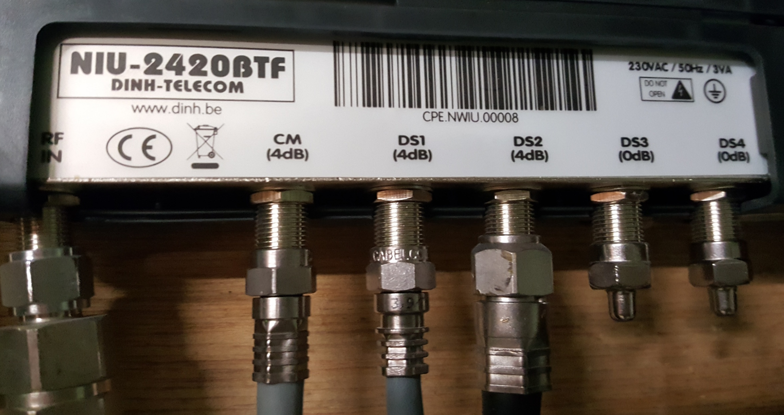 Modem in de kelder, aangesloten op de COAX. Van hieruit telefoonlijn naar vaste telefoon, CAT5E naar TV box.