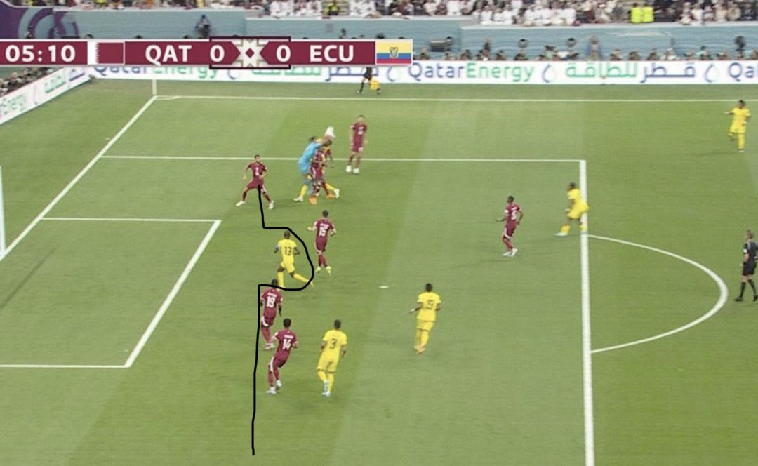 Ik heb het nog steeds niet goed gezien maar de techniek zal vast kloppen. Ik snap niet welke gespeelde bal dan buitenspel veroorzaakt. Want ze richten zich op die speler van Ecuador met de teen, maar die ging het duel aan. Op het moment van het spelen van die bal vanaf het middenveld, stond hij niet buitenspel. Hoe kan hij dan degene zijn die buitenspel staat als hij de enige speler is daar die de bal raakt? Ik moet echt een paar herhalingen zien, de techniek is te slim voor mij