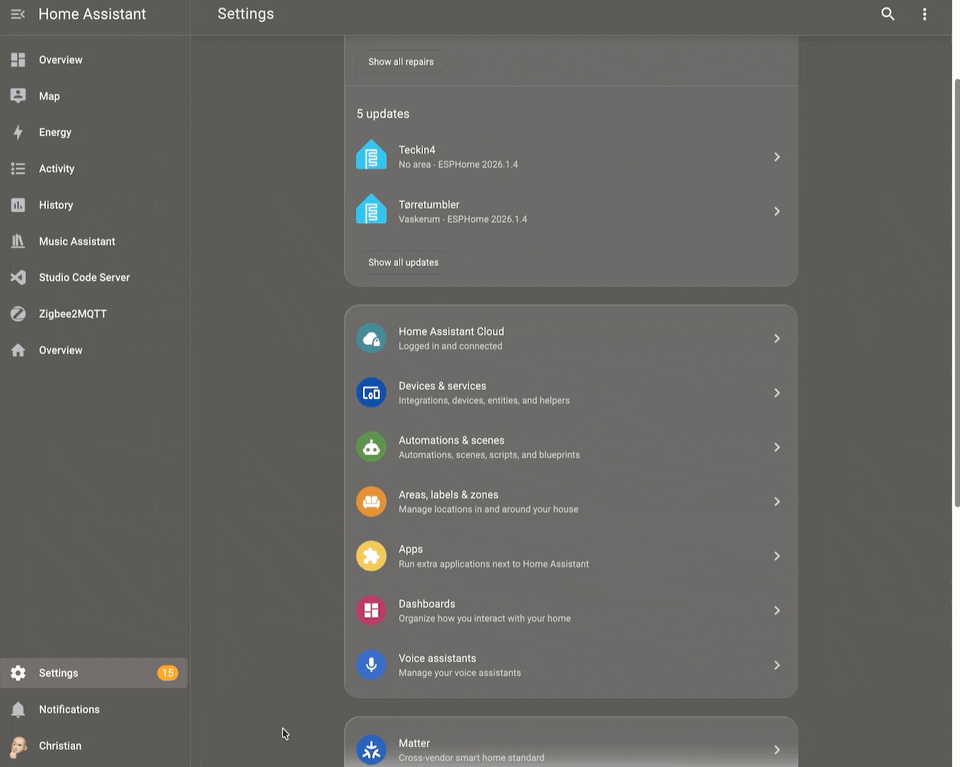 LG (AWHP R32) / ESPhome (ESP32) / GoodWe 4K-DT (5kWp) / Homewizard (1 PiB) / Home Assistant (NUC)