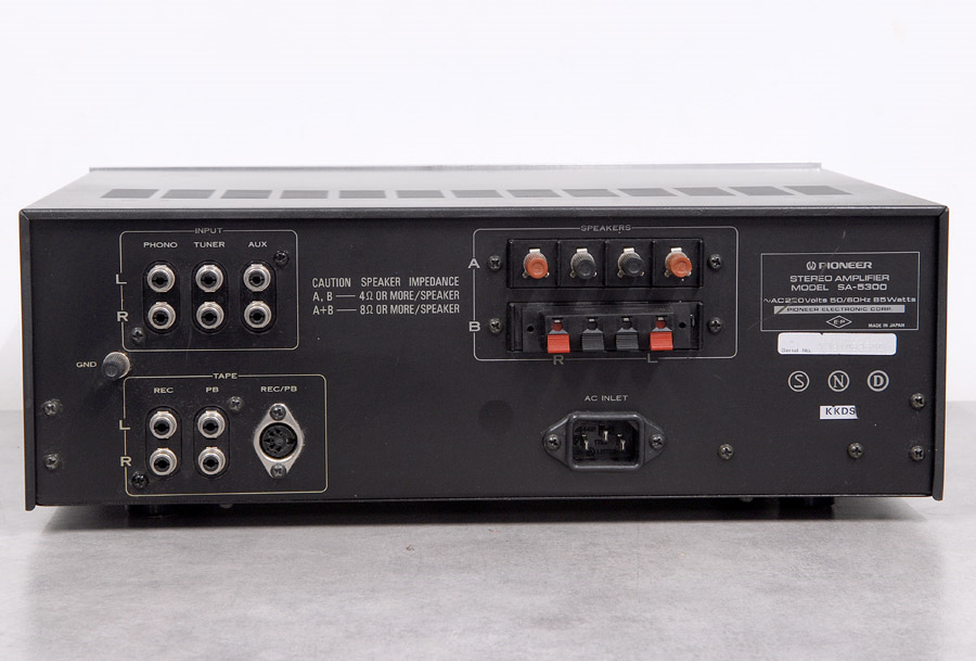 Ik heb een oude Sony PS-LX 100 platenspeler en twee oude Aiwa speakers (SX-LEM50). Op dit moment hangt de platenspeler met RCA kabels aan een Pioneer SA5300 versterker. De Aiwa speakers hebben "gewone rode en zwarte" kabels. Ik weet niet hoe deze kabels heten.. op deze foto zijn de RCA kabels links op de phono input aangesloten. De speakerkabels zijn aangesloten op A en B (links en rechts).