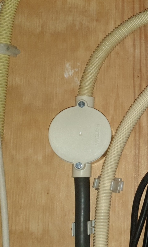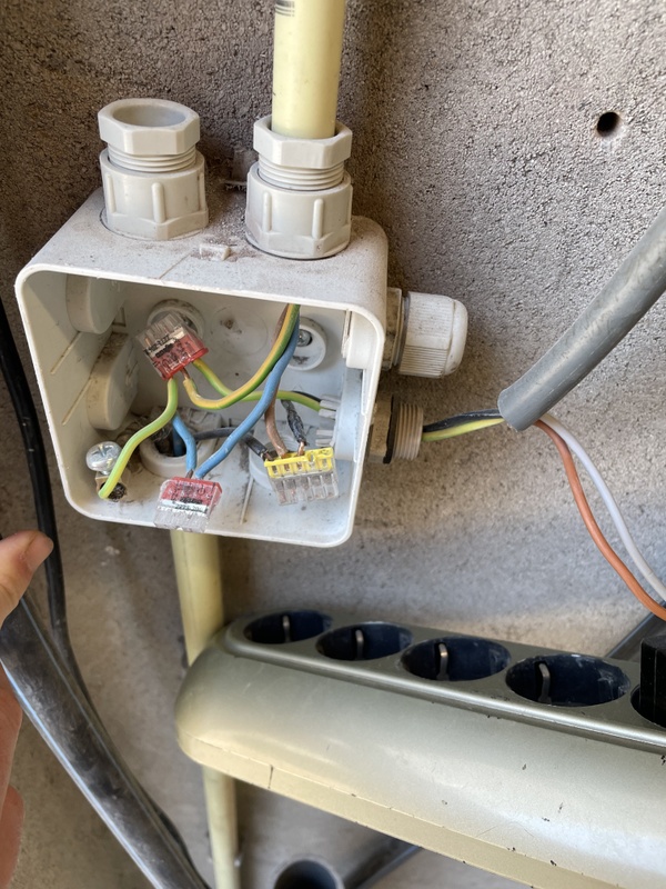 Door de spleetjes her en der kan ongedierte makkelijk in de kast komen en ellende veroorzaken. De grondkabel bovenin lijkt zonder buis te zijn ingevoerd, maar het is een buisinvoer dus daar moet nog een buisje omheen.