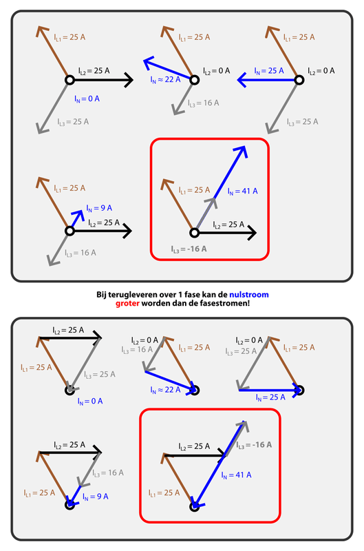 - De grijze en zwarte draad zijn voor als het ooit 3 fase gaat worden