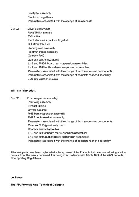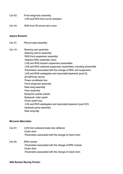 Hier nog een overzicht wat vervangen is door de teams tijdens parc fermé.