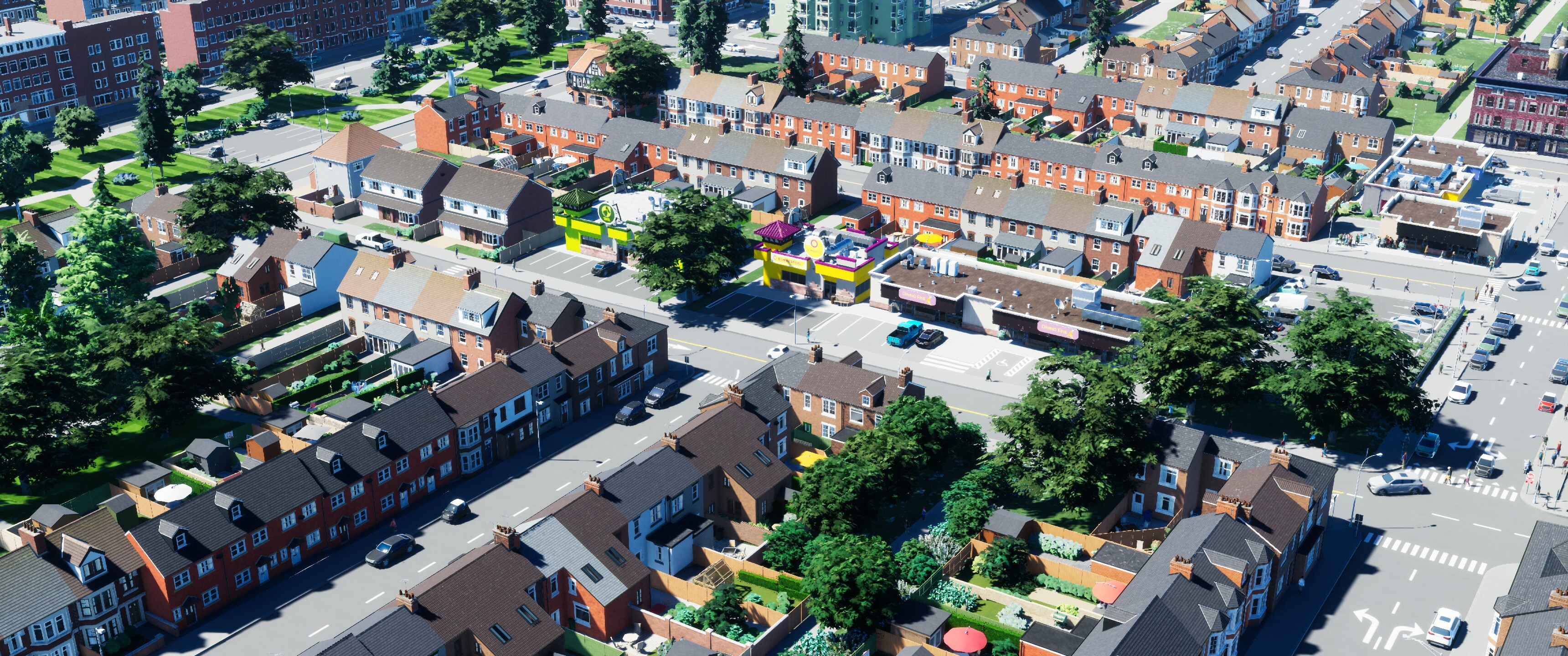 Persoonlijk vind ik de medium density Nederlandse gebouwen erg mooi passen bij de Engelse low density huizen.