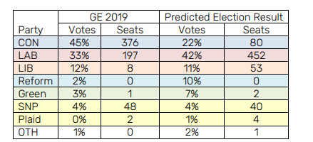 Met 3 procent minder stemmen dan wat de Conservatives hadden haalt Labour 76 meer zetels.