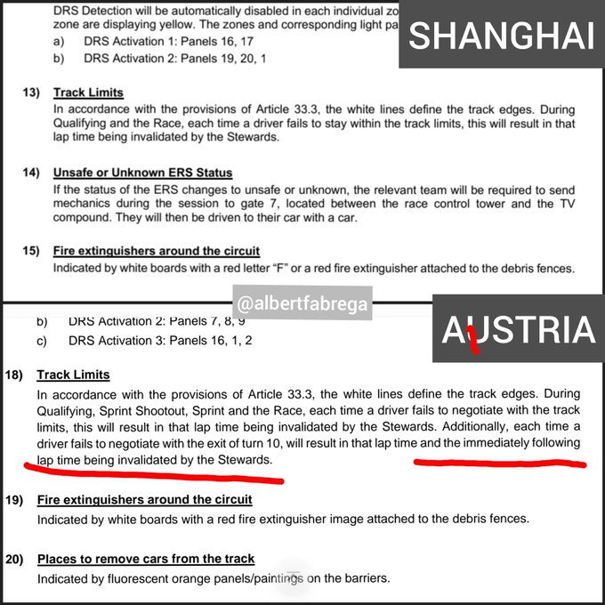 Dit soort regels zijn vaak voor circuits als Oostenrijk, waar je idd voordeel kan halen door je outlap de laatste bocht buiten de baan kan gaan zodat je met meer snelheid het rechte stuk op komt.cannibal schreef op vrijdag 19 april 2024 @ 10:47: