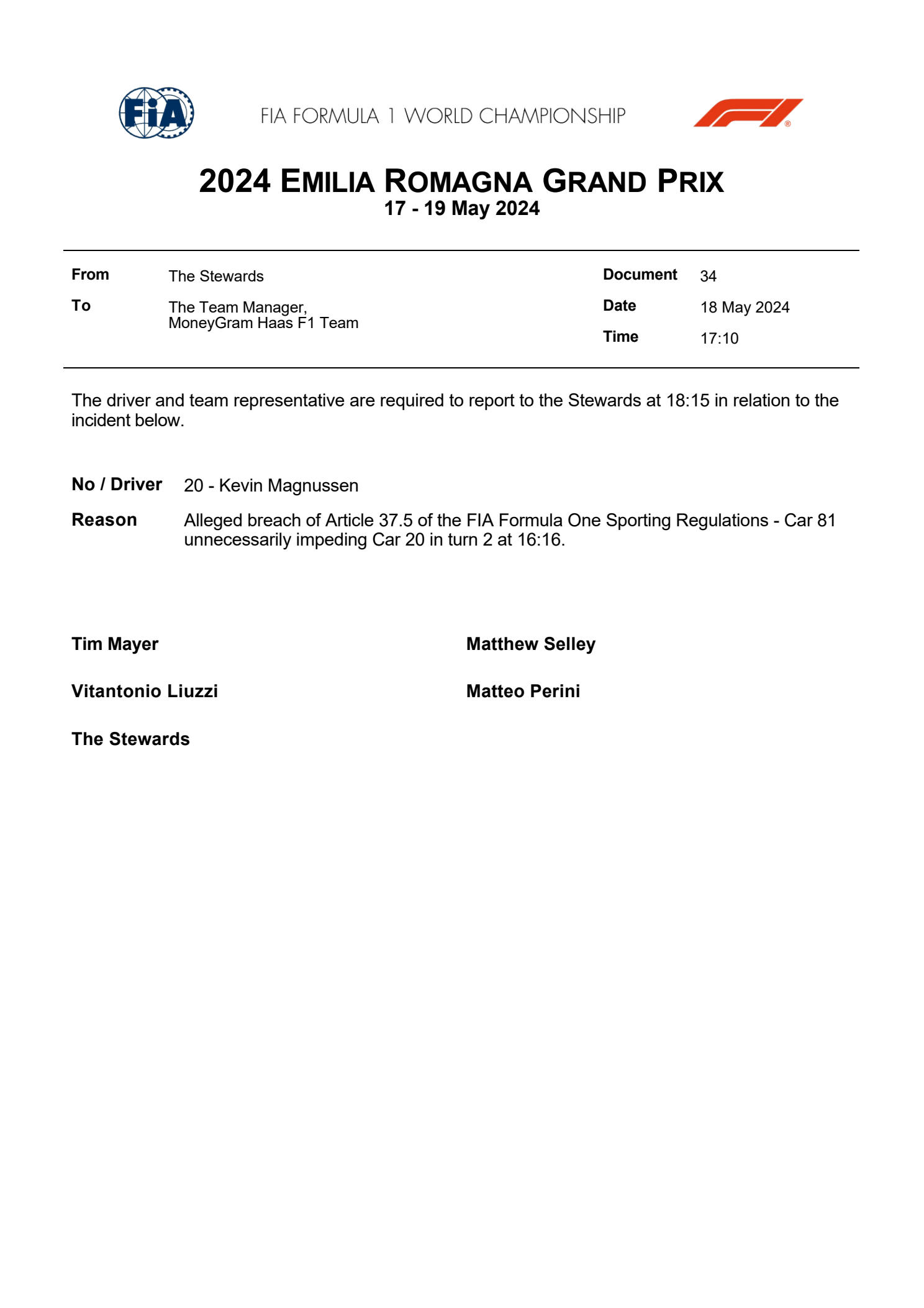 Impeding, Magnussen. Volle bak in Tamborello ervoor, op zijn minst dus de eerste 2 bochten hinder.Drials schreef op zaterdag 18 mei 2024 @ 17:39: