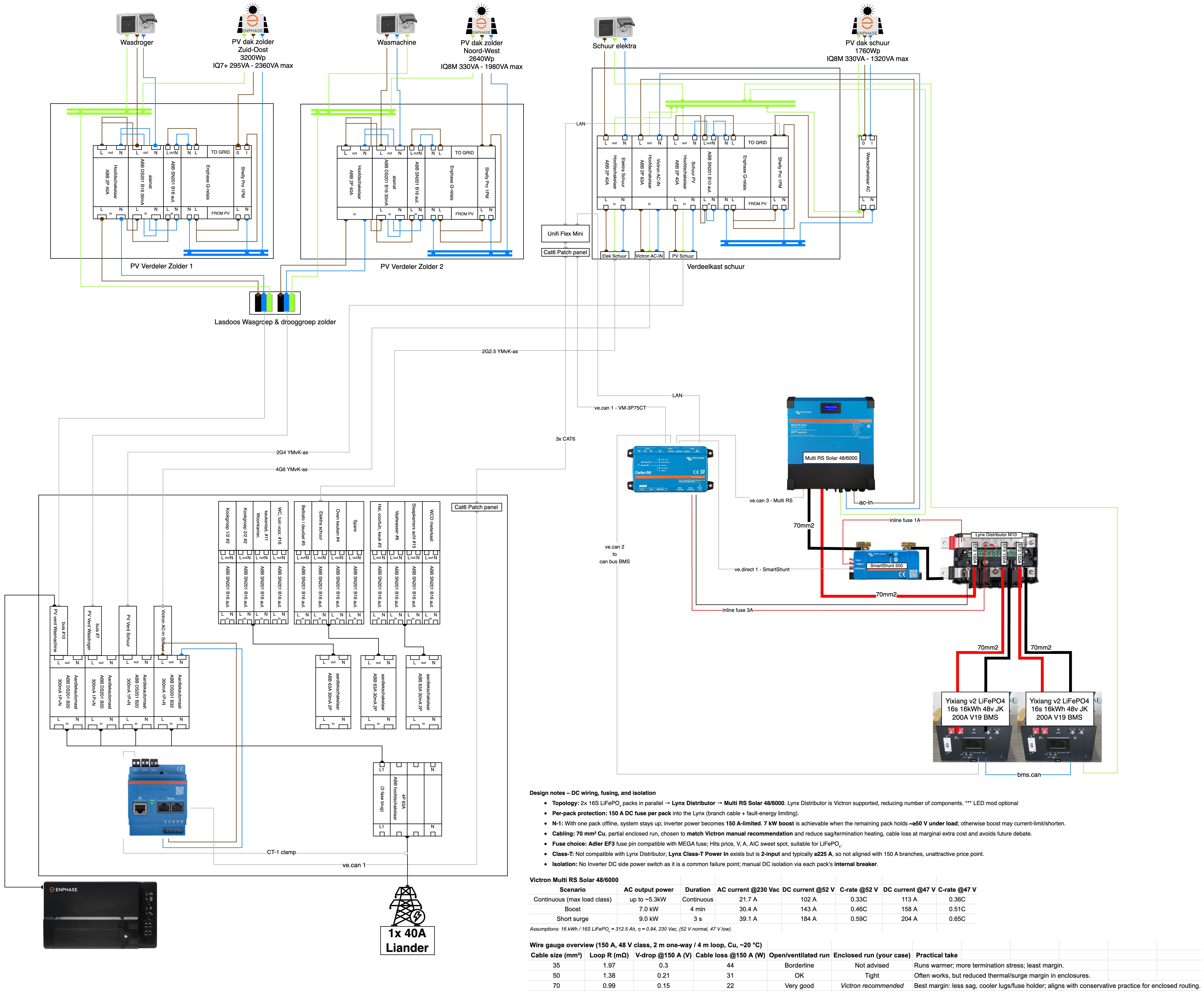 Wellicht ter verduidelijking: in netbedrijf zit die PEN verbinding in het trafohuisje, in eilandbedrijf mis je dus die PEN verbinding, dus moet je daar zelf voor zorgen. Standaard wordt bij de Victron omvormers (tenzij je dit doelbewust uitzet) de PEN verbinding gemaakt met een relais op het moment dat hij naar eilandbedrijf overschakelt.